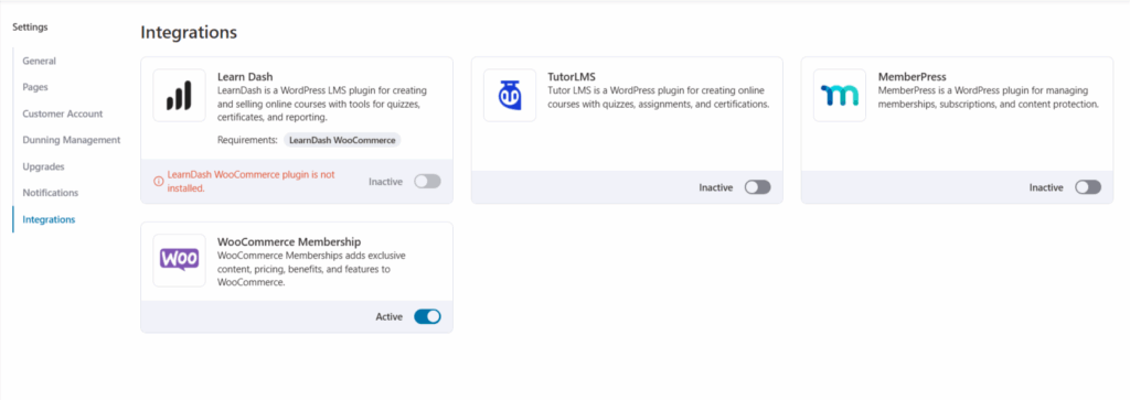 Sublium’s integration with LearnDash, Tutor LMS, MemberPress, and WooCommerce Memberships allows businesses to manage subscription-based access to learning content and membership products seamlessly.