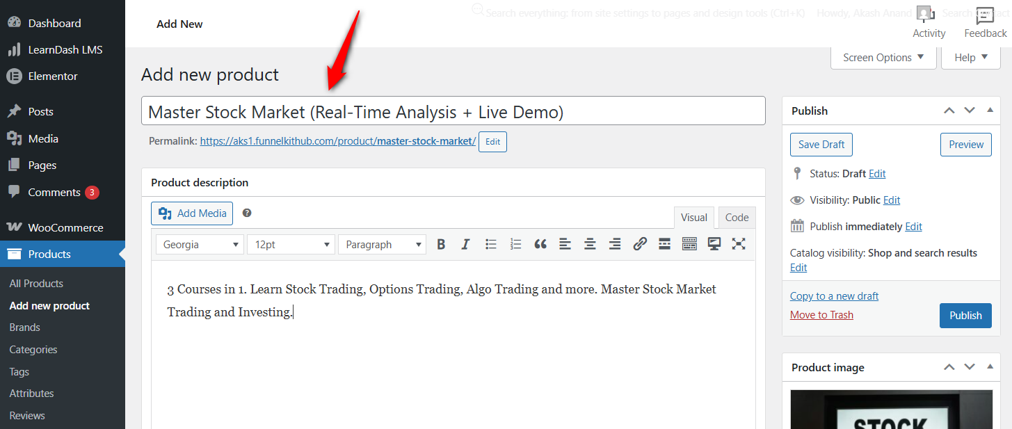 Step 2: Create a product for the course in WooCommerce