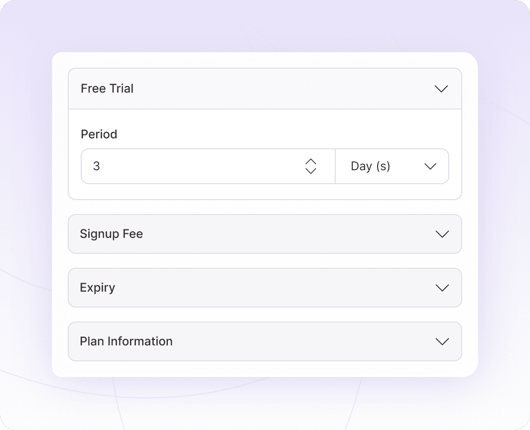 Break free from rigid plans. Offer weekly, monthly, annual, or custom billing intervals to match your business model. Sublium handles the complex recurring billing logic, ensuring you get paid on time, every time.