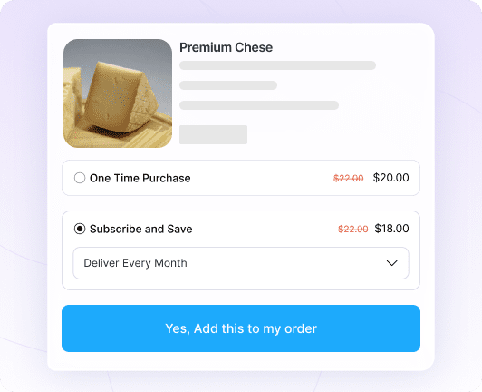 Boost recurring revenue and average order value (AOV) on autopilot. Deploy targeted upsells that turn one-time buyers into high-value subscribers instantly.